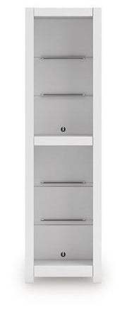 - Matte white finish with subtle replicated wood grain