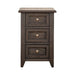 Liberty Furniture Mill Creek Chair Side Table in Peppercorn 792-OT1021. Designed to last throughout the years, the Mill Creek chairside table will delight generations to come. Crafted with excellence using rubberwood solids and split heart white oak veneers, this piece features a Peppercorn finish. There are three full extension drawers with wood framed drawer fronts that are accented with Burnished Brass knob hardware. The beveled edge of the drawer fronts add visual interest while the tapered feet is sure to catch the eye. The Mill Creek chairside table offers lots of function in a classic, timeless design.